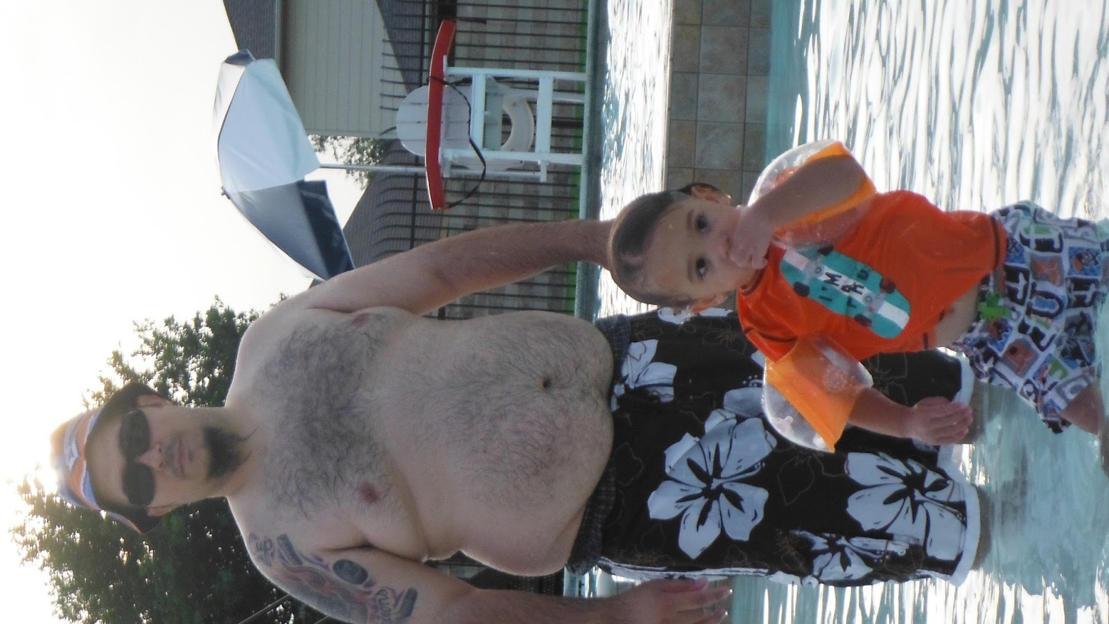 The first two summers of the twins' lives weren't conducive for a lot of water play...The first year they were WAY too little and Luca was attached to machines and had medication that prevented him from being allowed in the sun etc, etc... Last summer while we went to splash pads and the like we only visited 1 actual pool (thanks Aunt Kristy!)... the twins loved it but they weren't quite old enough for to enjoy the full experience LOL.. Since moving to Texas we have found that practically every park, community common area, etc has a splash pad or pool with wading area. This past week we finally tried the actual pool area after playing repeatedly in splash pads. The twins have been weary of the water coming from overhead. Sometimes, that water is coming fast and can be a little harsh on the body. Anyway, we tried Teta and Tio's community pool last week and the kids loved it! Teta's pool is great because it has a splash pad, a wading pool with a small slide and a regular pool (with a giant slide for people that can swim without help- sorry boys!). The kids are able to enjoy all aspects and a lifeguard is on duty to help moms of 3 3 and under if need be! Daddy went with us and the boys loved having daddy work on teaching them to kick their legs and swim. Since daddy has always loved the water, he enjoyed this as well!